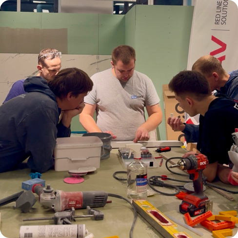 Программу разрабатывали долго: от простого к сложному и сразу через практику. Параллельно искали и договаривались с партнёрами, чтобы обучение проходило в условиях, максимально близких к реальным объектам: тот же инструмент, те же материалы, те же задачи.