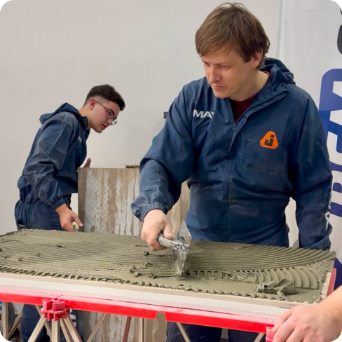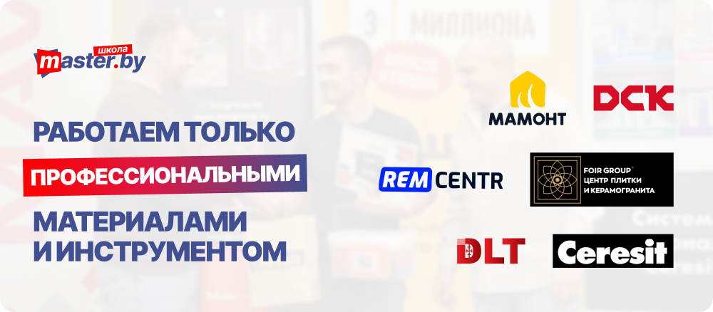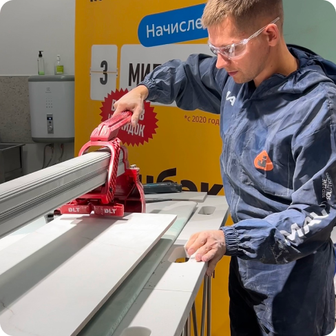 - Укладка плитки на пол и стены. Практическая часть курса — укладка горизонтальных и вертикальных поверхностей. Студенты учатся замешивать клей, формировать уклоны и резать плитку.
