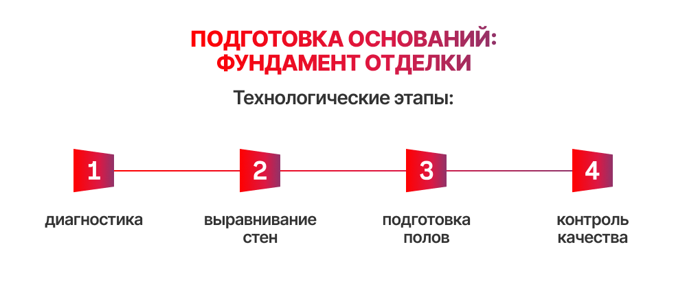 - подготовка оснований: фундамент отделки;