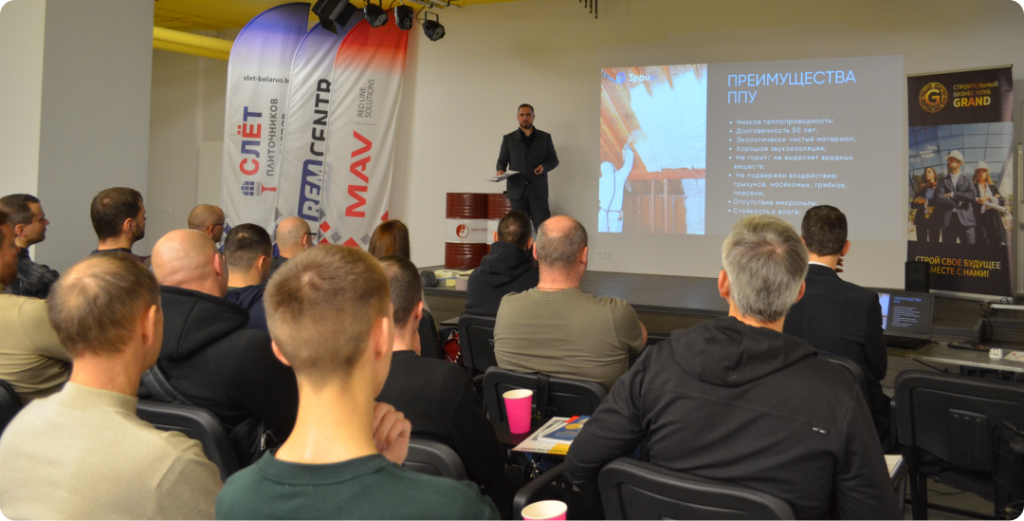 4 декабря в строительной школе master.by прошел семинар на тему «ИННОВАЦИИ В СТРОИТЕЛЬСТВЕ В СФЕРЕ ТЕПЛО- И ГИДРОИЗОЛЯЦИИ», организованный совместно с компанией 3ppu.by. Мероприятие привлекло специалистов из разных областей строительства: утепления, гидроизоляции, фасадных, кровельных и отделочных работ. Спикеры компании 3ppu.by рассказали о таких инновационных материалах, как пенополиуретан и полимочевина, которые помогают повысить энергоэффективность зданий и сделать их более долговечными.